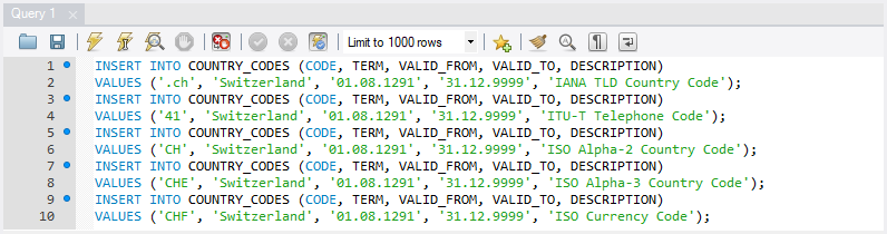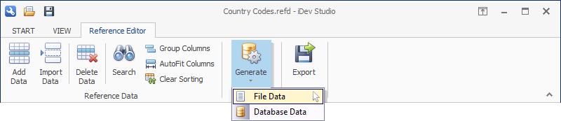 In the invoked Save File dialog, specify the file name and click button Save. This generates the reference data in the SQL format.