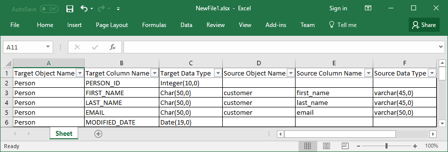 Data mapping can be exported as Excel Workbook (*.xlsx), Excel 97-2003 Workbook (*.xls), CSV (Comma delimited) (*.csv) and Formatted Text (Space delimited) (*.txt).