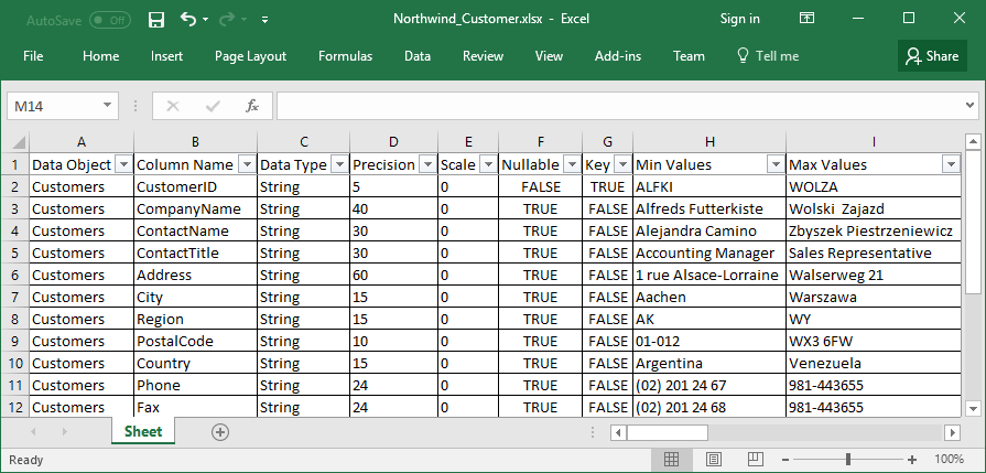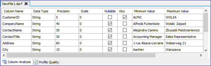 Column Analysis helps to discover metadata information, minimum and maximum value, plus column length distribution.