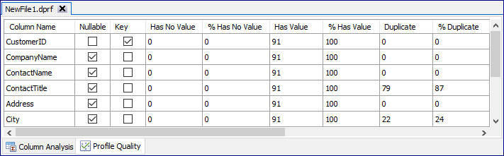 Profile Quality enables to measure the amount and percentage of nullable, duplicates, distinct, unique & non-unique values.