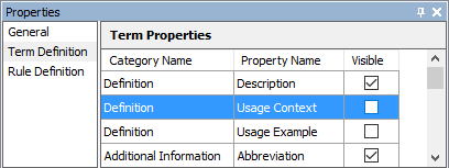 Customize which information should be visible in a business glossary. The visibility of each attribute can be displayed or hidden without affecting the underlying data.