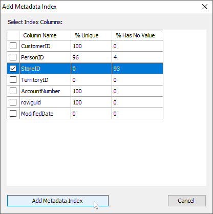 Metadata Indexes can be created now. A metadata index helps to assess whether known metadata accurately describes the actual values of the data profiling object and to understand data challenges early. There are two types of metadata indexes: