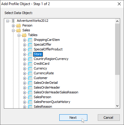 Add Profile Object dialog guide you through the steps to create a data profile.