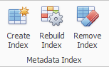 There are three buttons available in Data Profiling menu to manage metadata indexes: Create Index, Rebuild Index, Remove Index.