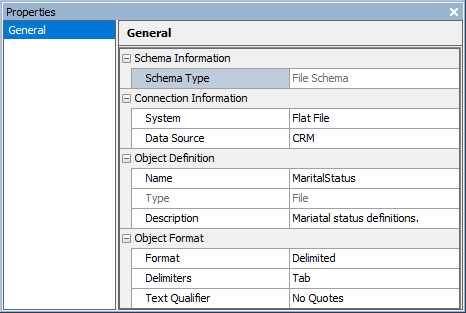 For schema type file schema are new property fields added: format, delimiters, text qualifier.