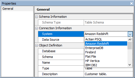 System property is changed to a combobox to allow system changes. A system change will adapt the properties shown in the Property window.
