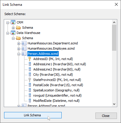 Link Schema dialog has new icon for foreign key and column captions (primary key, foreign key, data type, nullable).