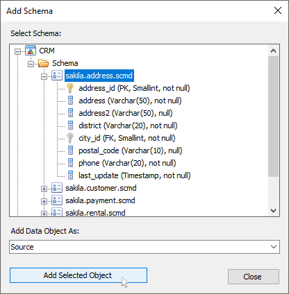 Add Schema dialog has new icon for foreign key and column captions (primary key, foreign key, data type, nullable).