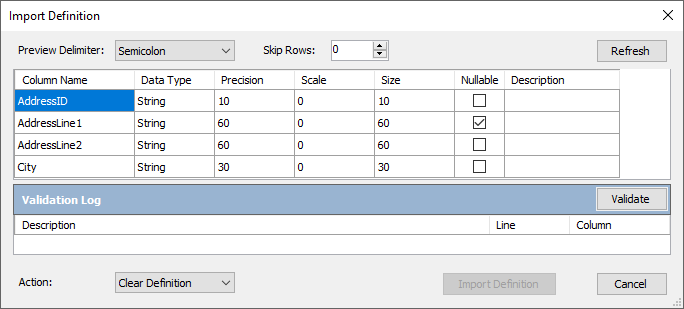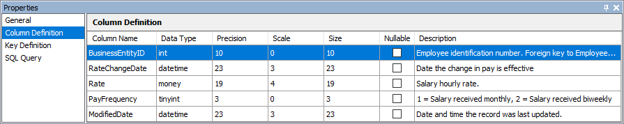 Property ‘Column Properties’ is renamed to ‘Column Definition’. Columns Size, Nullable and Key are removed in file objects. Column Key is removed in database objects.