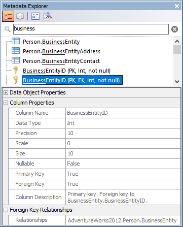 - Metadata Explorer shows new property primary and foreign key for columns. Create schema from Metadata Explorer will add primary and foreign key to schema definition.